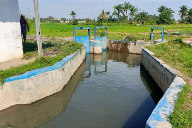 MARINDAL – Agar aliran air di kanal mengalir bebas hambatan dan bersih dari sampah, pintu air kanal selalu rutin dikontrol dan dibersihka n dari sampah yang dibawa arus air.